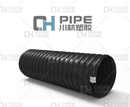 埋地排水用钢带增强聚乙烯螺旋波纹管是一种HDPE与钢带熔融复合的雨污水管材,管壁结构由三个层次构成:内层是一个连续缠绕实壁管,中间将钢带折成倒“U”型作为钢带增强体,在涂复与钢带增强体波形相同的HDPE外层,通过粘接树脂将内外层复合成一体。